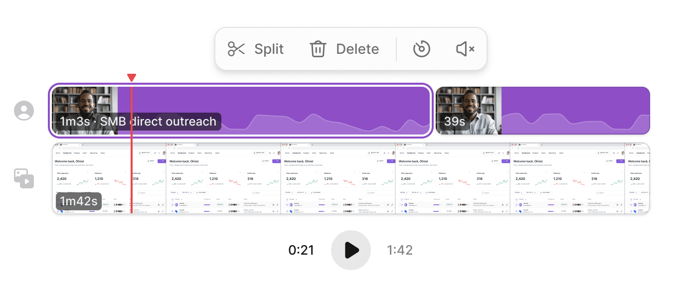 Rally's narration system lets multiple presenters record in the same video. Change voiceovers for new audiences, without redoing your recording.
