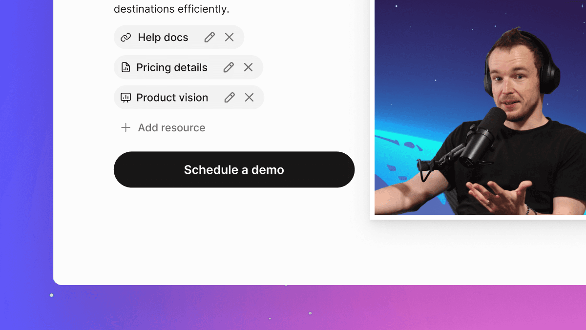 Add call-to-action buttons and attach resources to videos shared with customers.