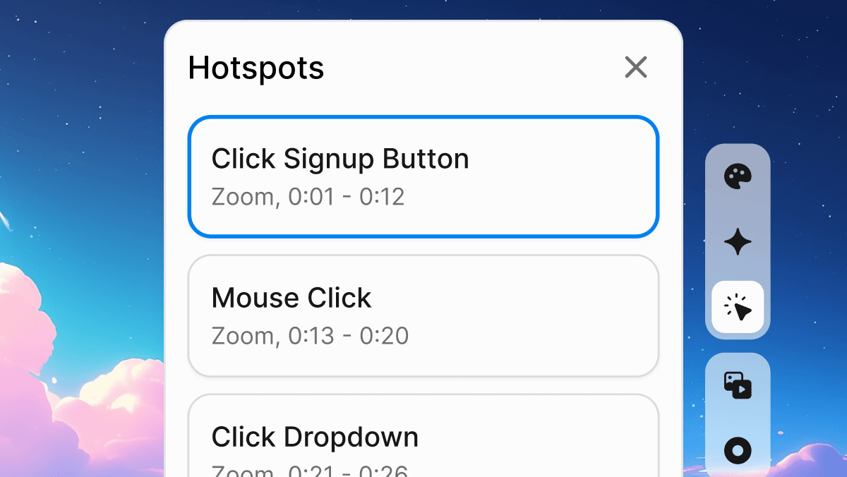 Tell your story with video editing that works just like making slides in a deck. Mix recordings, screenshots and slides in the same presentation. Modular videos make it simple to reuse content and update after publishing.