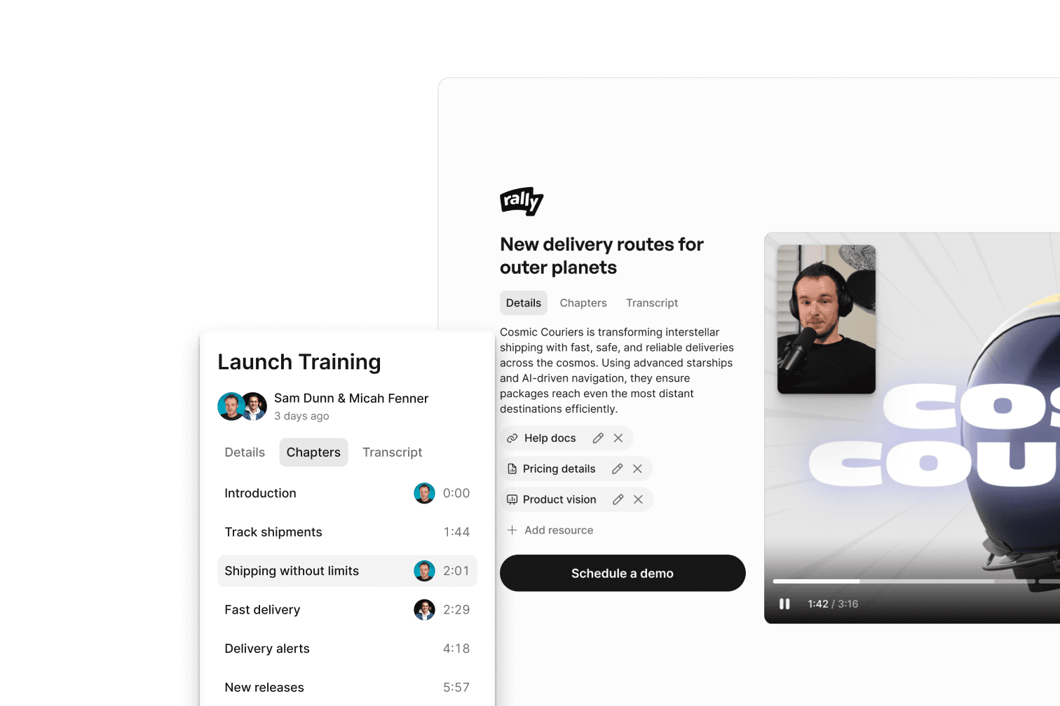 Capture your screen and camera with a native app or in-browser recorder. Rally separates content, narration and cursor tracks so you can easily make changes later.