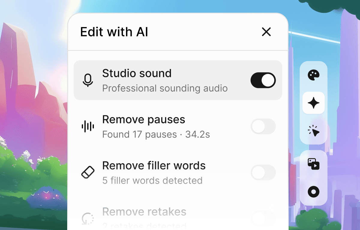 Sound great by default with studio-quality voice isolation and automatic filler word removal.