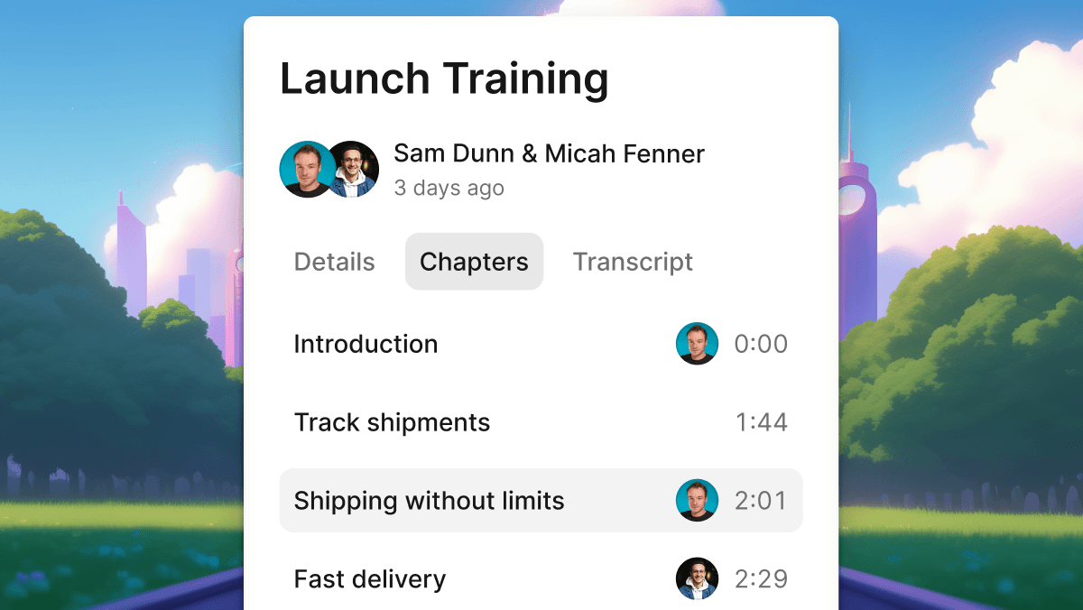 Publish and share a link, embed in docs, or download clips for social media. Read receipts show when you reach your audience, and which clips were most engaging.